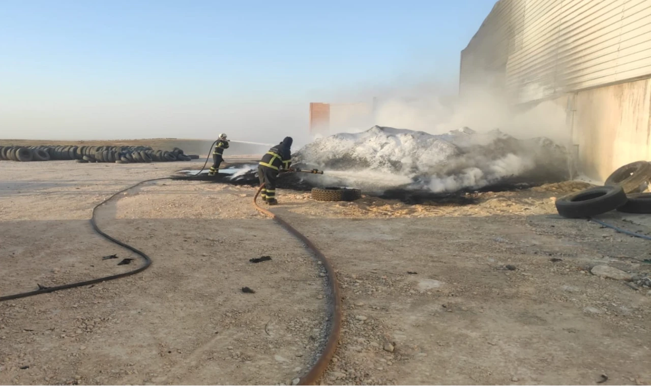 Şehmus EDİS / MARDİN (İGFA) - Ortaköy Yolu üzeri Yeni Organize Sanayi Bölgesinde bulunan plastik geri dönüşüm fabrikasının bahçesinde bulunan granül ham maddede henüz bilinmeyen bir nedenden yangın çıktı.
